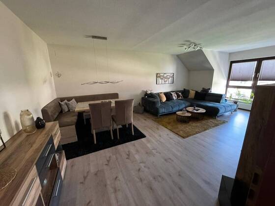 Diese im Jahr 2016 sanierte Wohnung befindet sich im Dachgeschoss eines Zweiparteienhauses in einer ruhigen Stichstraße von Heßdorf.